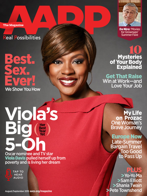 AARP the Magazine, August/September 2015. Viola Davis photographed by Robert Trachtenberg/Trunk Archive.